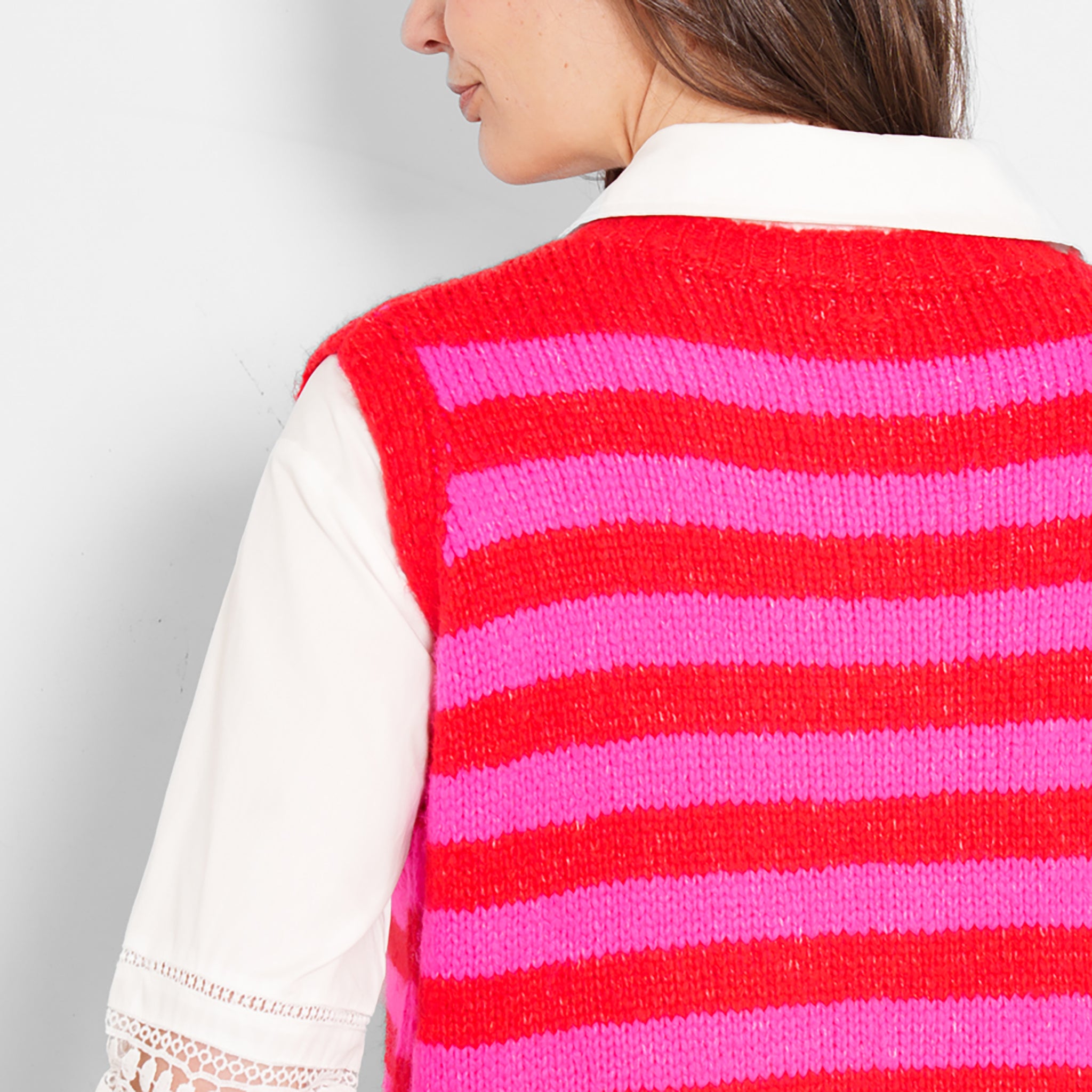 Crafted from a warm wool blend yarn this sleeveless tank top is ideal for winter. Featuring a bold stripe pattern and a comfortable round neck.