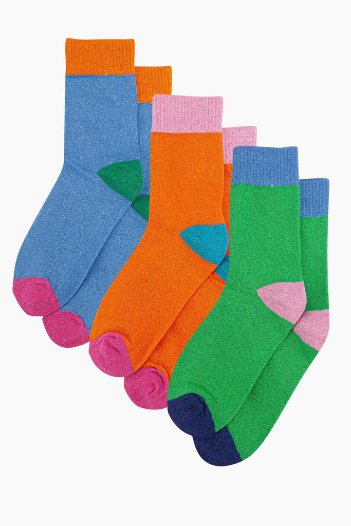 Women's Multicolour Colour Burst Glitter Socks - 3 Pack