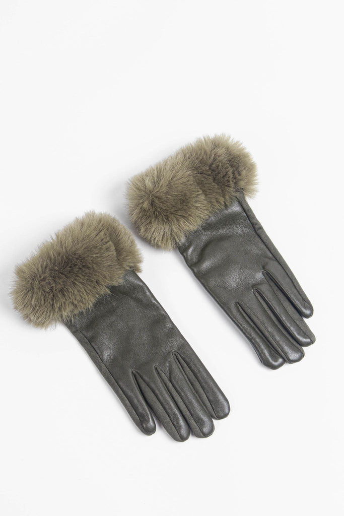 Maya Faux Fur Cuff Gloves - Khaki/Olive, PU