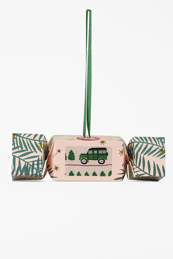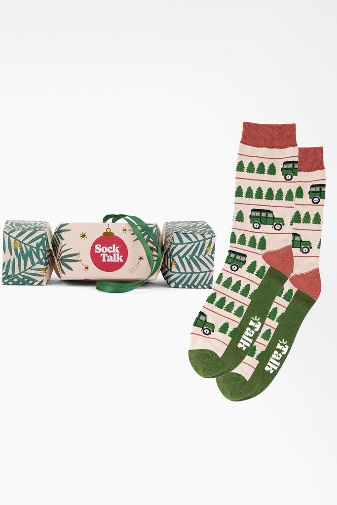 Men's Bamboo Crew Socks Christmas Cracker Gift Box - Cream/Green, Off-Roader