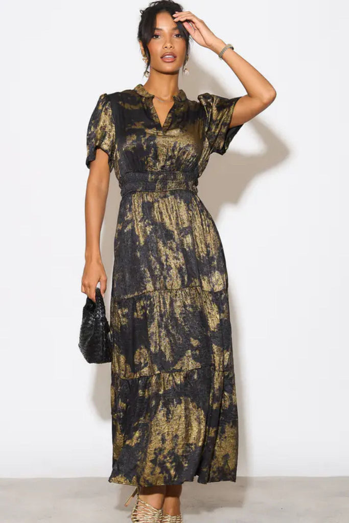 Roxy Tiered Maxi Dress - Black/Gold, Metallic Oil Slick