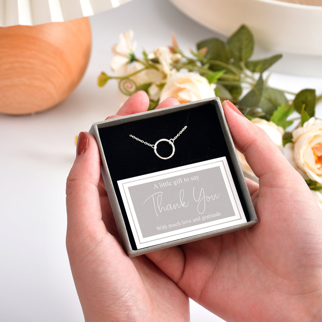 Thank You Gift, S925 Circle Necklace with Gift Box & Card, Womens CZ Necklace, Appreciation Gift for Her, Gratitude Gift, Best Friend Gift