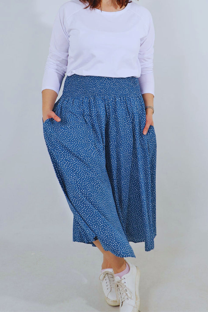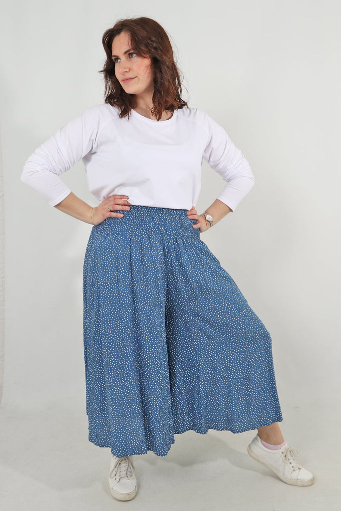 Wide Leg Culottes - Blue, Scattered Polka Dots