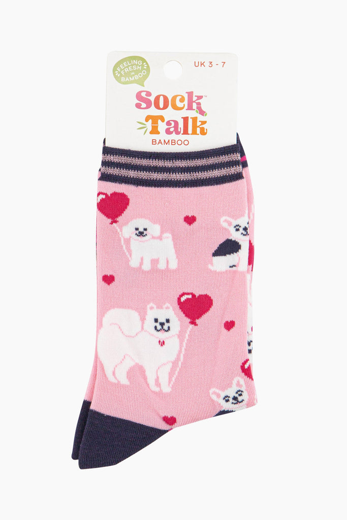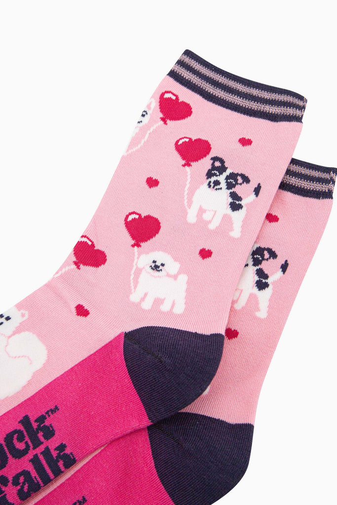 Women's Bamboo Socks - Pink, Dogs with Balloon Hearts