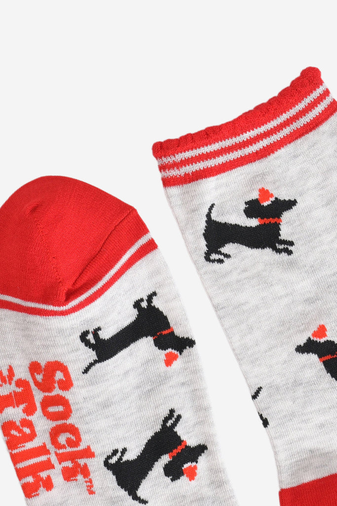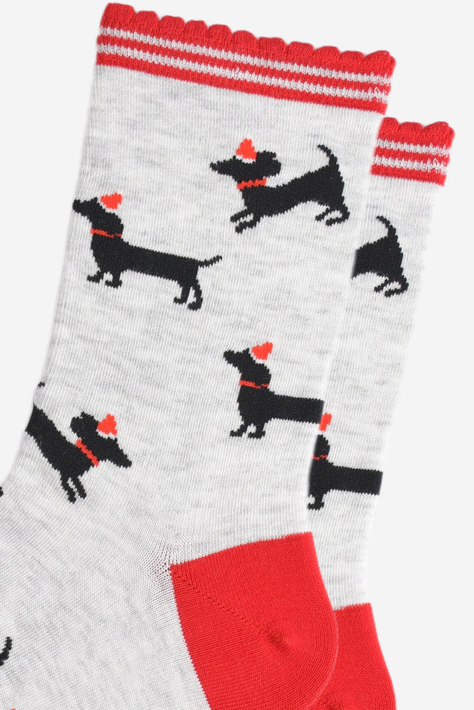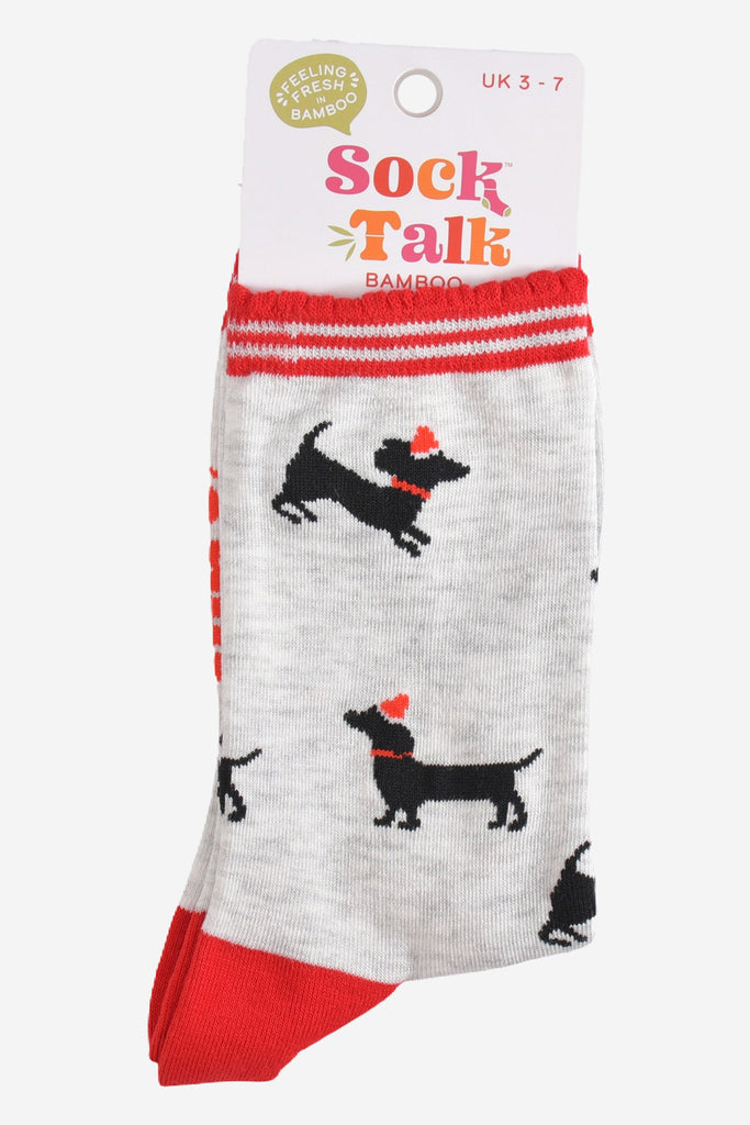 Women's Bamboo Socks - Grey/Red, Sausage Dog Santa