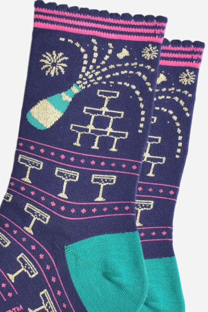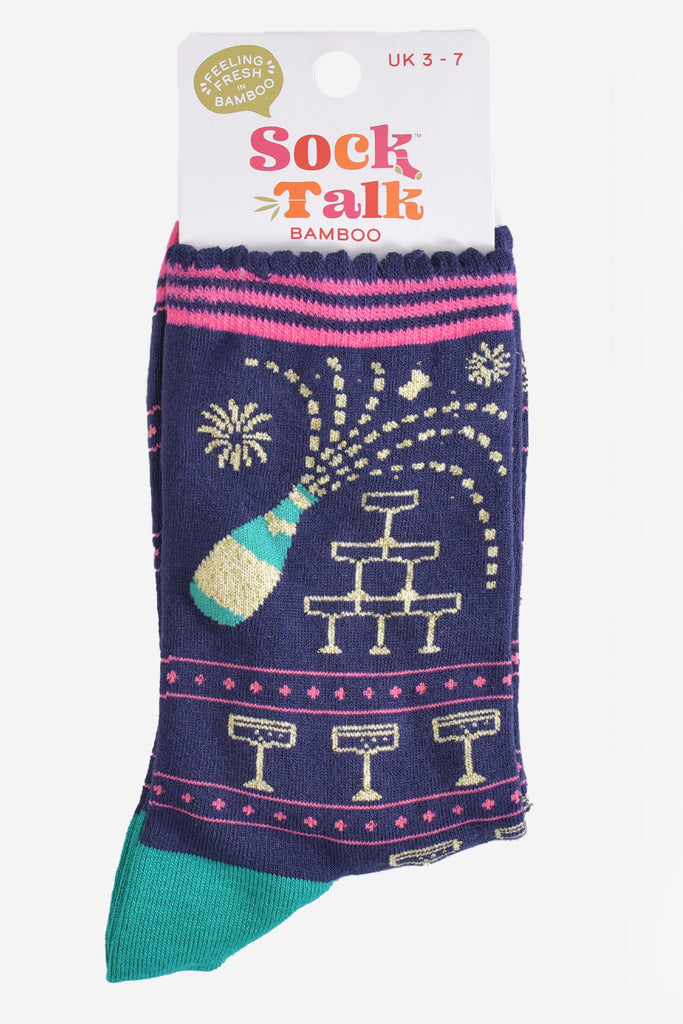 Women's Bamboo Socks - Navy Blue/Pink, Champagne Celebration
