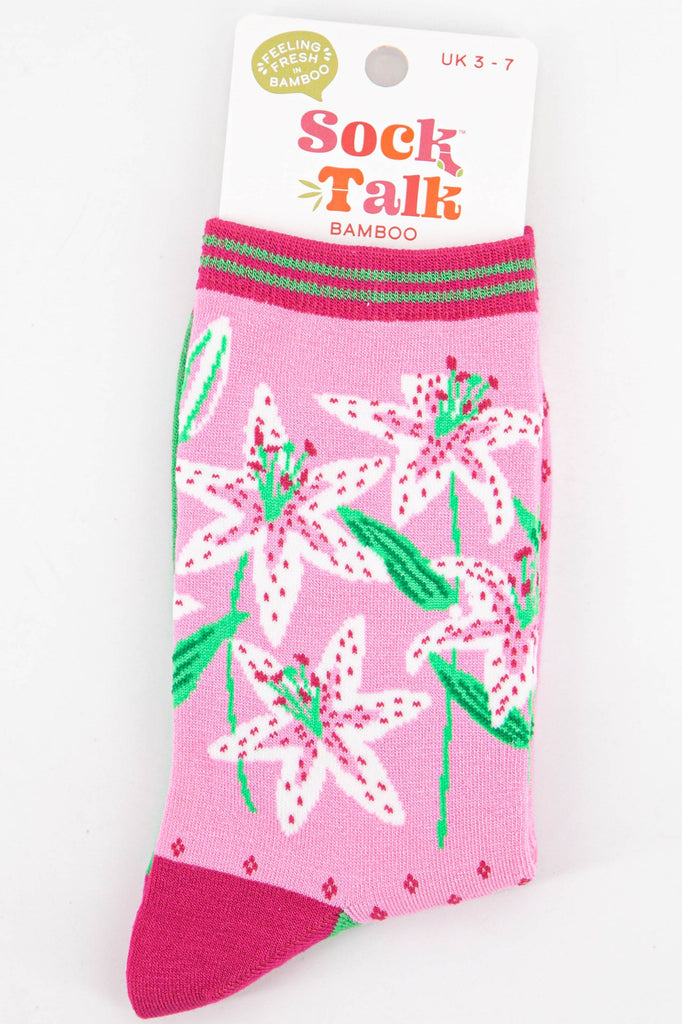 Women's White Lily Floral Print Bamboo Socks - is backordered and will ship as soon as it is back in stock.