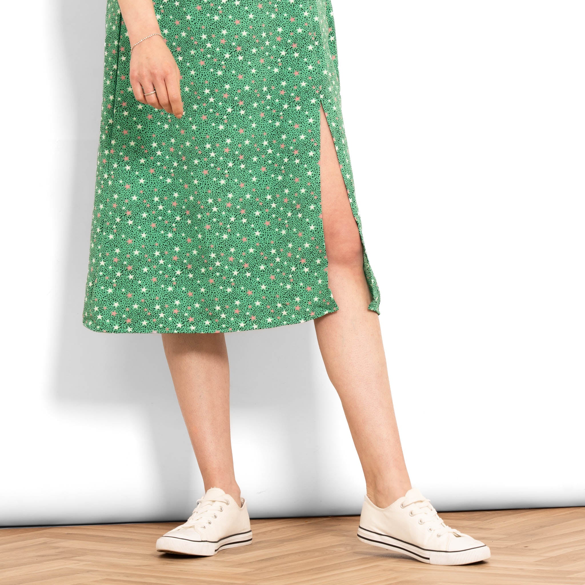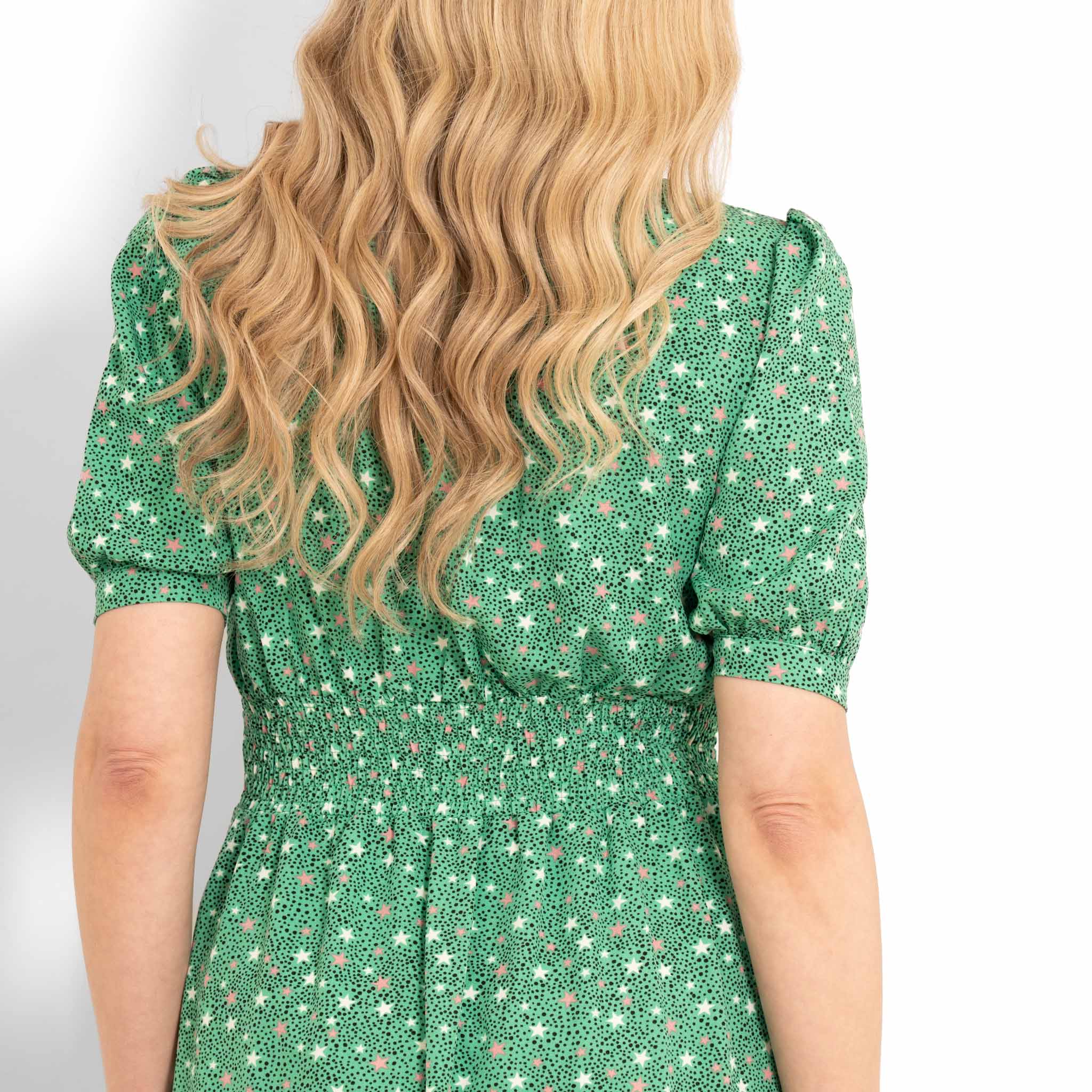Puff Sleeve Midi Tea Dress - Green, Stars & Dots