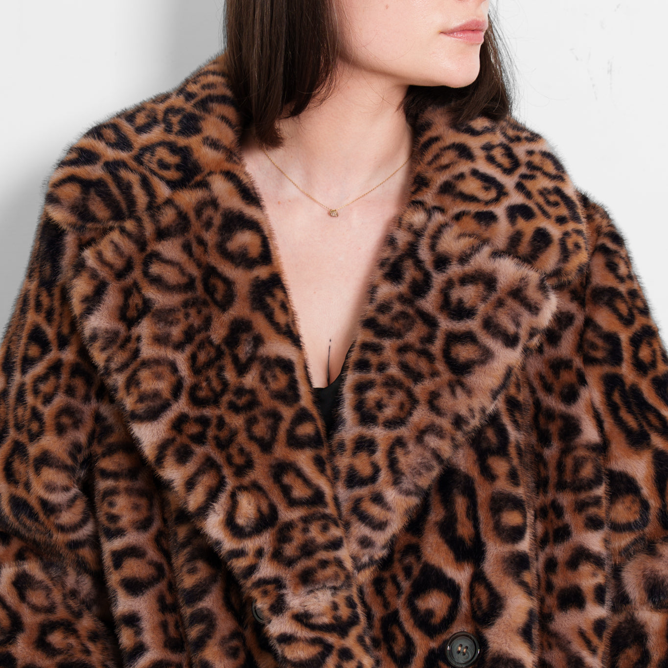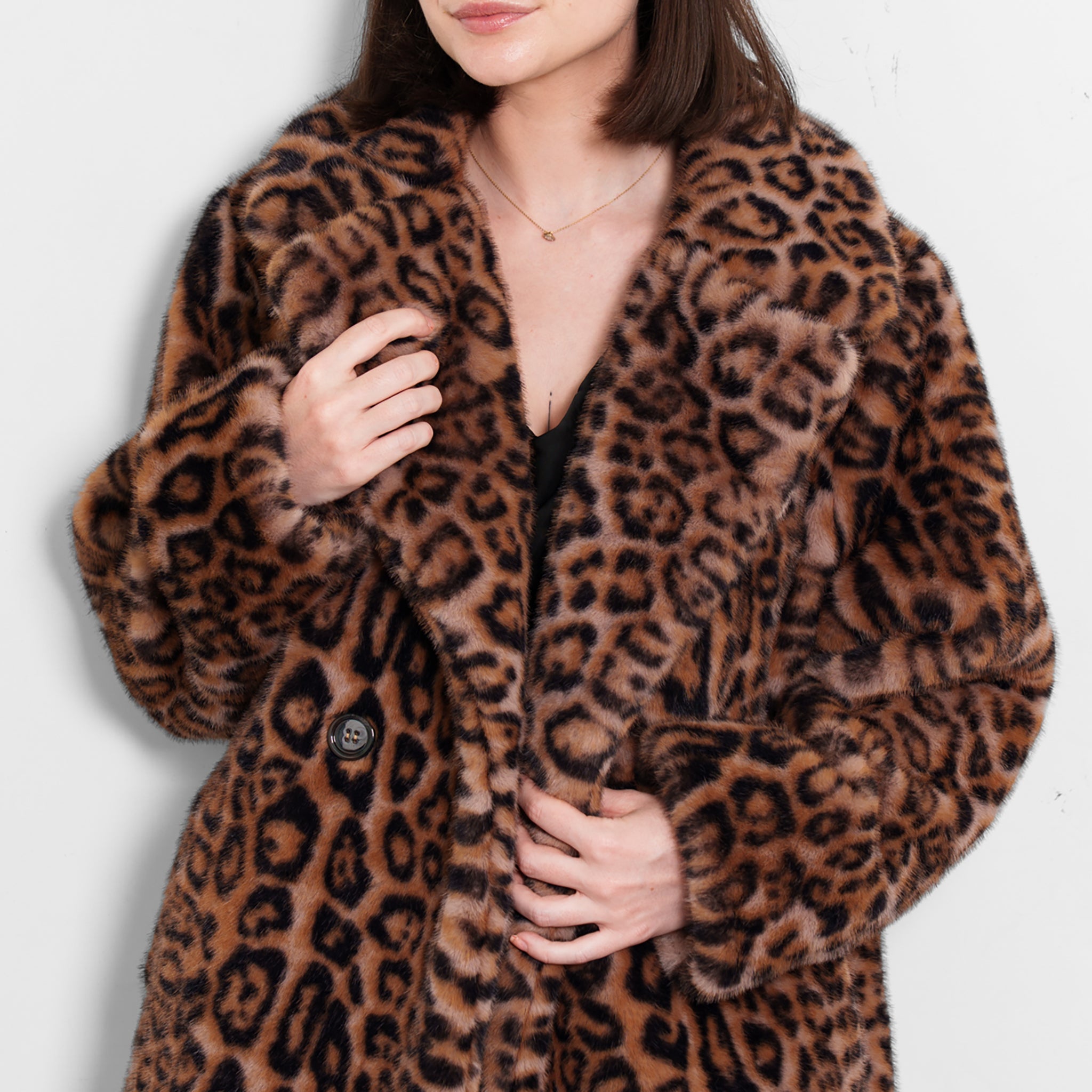 Renee Mid-Length Faux Fur Coat- Natural, Leopard