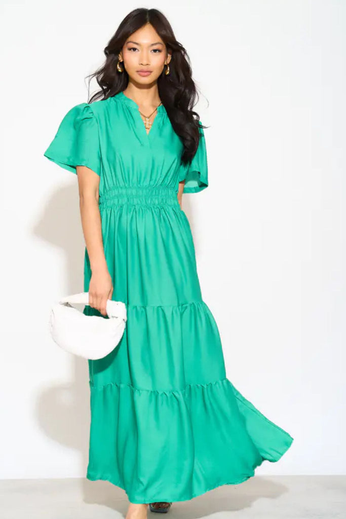 Pandora V-Neck Midaxi Dress- Khaki, Velvet Leopard