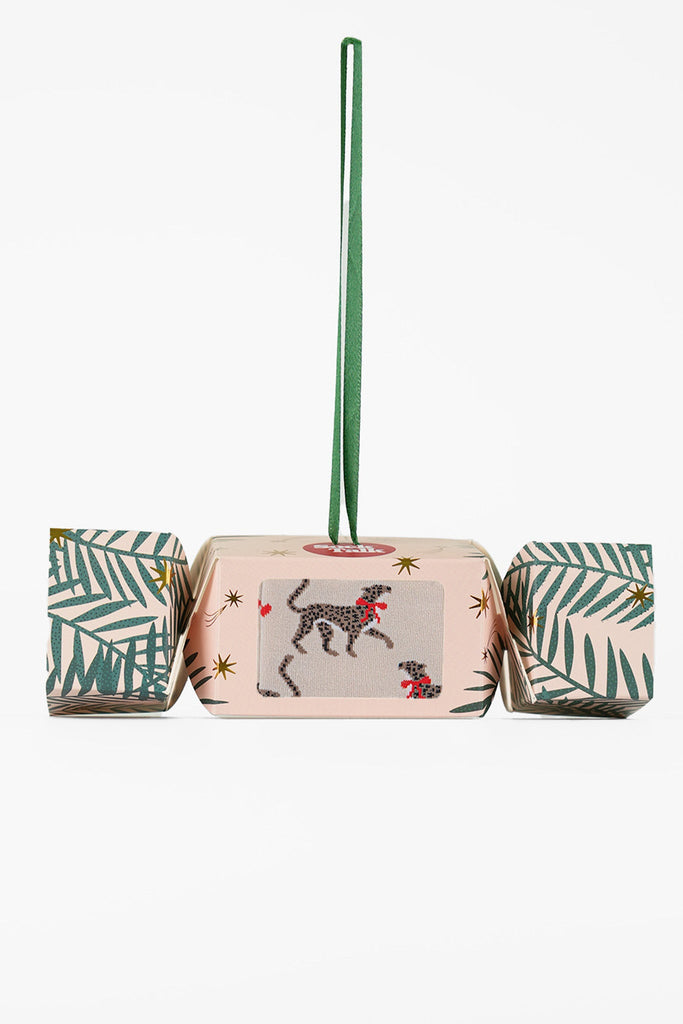 Women's Bamboo Ankle Socks Christmas Cracker Gift Box - Cream/Red, Winter Cheetah
