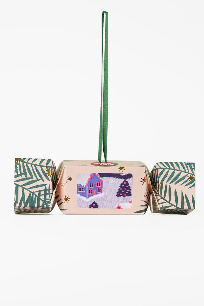 Women's Bamboo Ankle Socks Christmas Cracker Gift Box - Navy Blue/Pink, Winter Village
