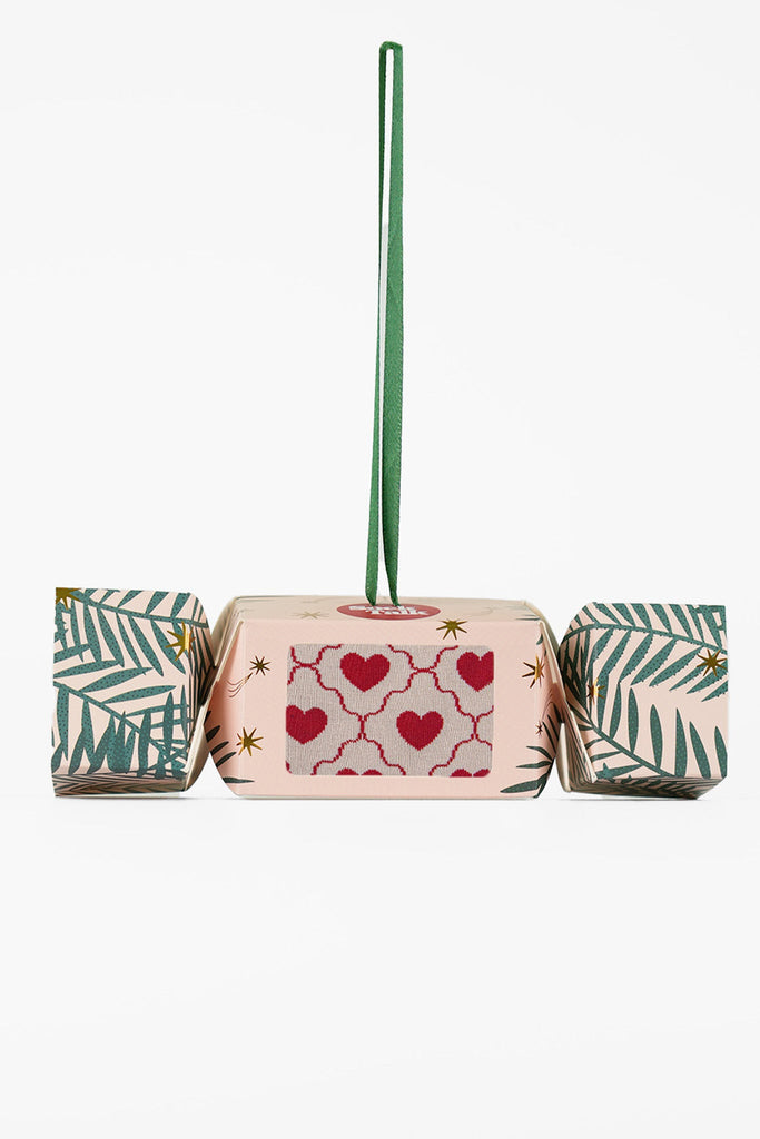 Women's Bamboo Ankle Socks Christmas Cracker Gift Box - Cream/Red, Heart Ribbon