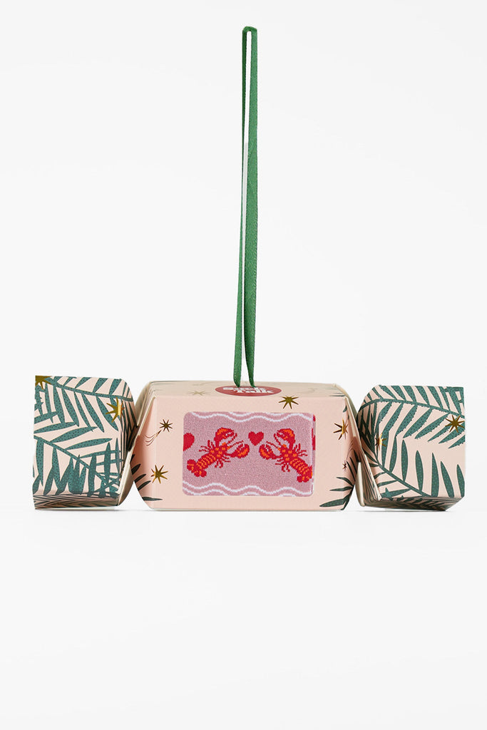Women's Bamboo Ankle Socks Christmas Cracker Gift Box - Light Pink/Red, Lobsters with Love Hearts