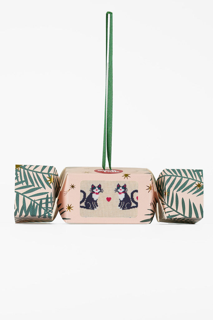 Women's Bamboo Ankle Socks Christmas Cracker Gift Box - Blue/Red, Christmas Cats