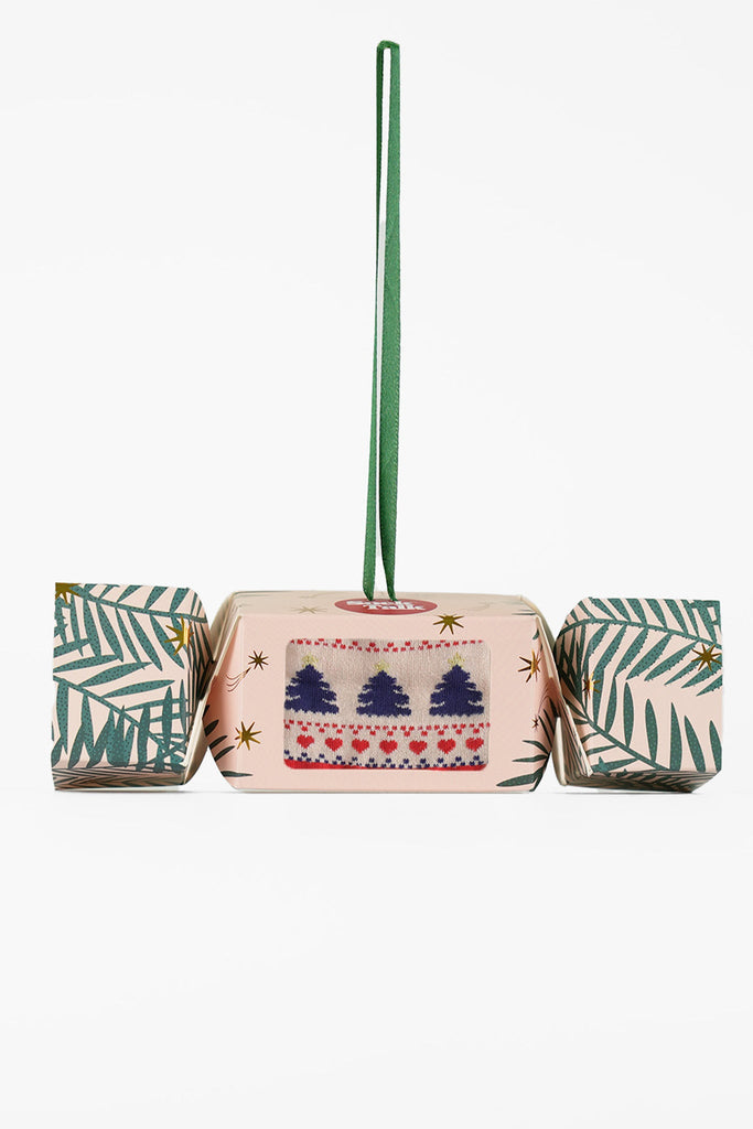 Women's Bamboo Ankle Socks Christmas Cracker Gift Box - Cream/Red, Christmas Fair Isle