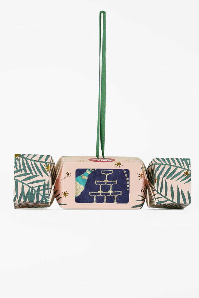Women's Bamboo Ankle Socks Christmas Cracker Gift Box - Navy Blue/Pink, Champagne Celebration