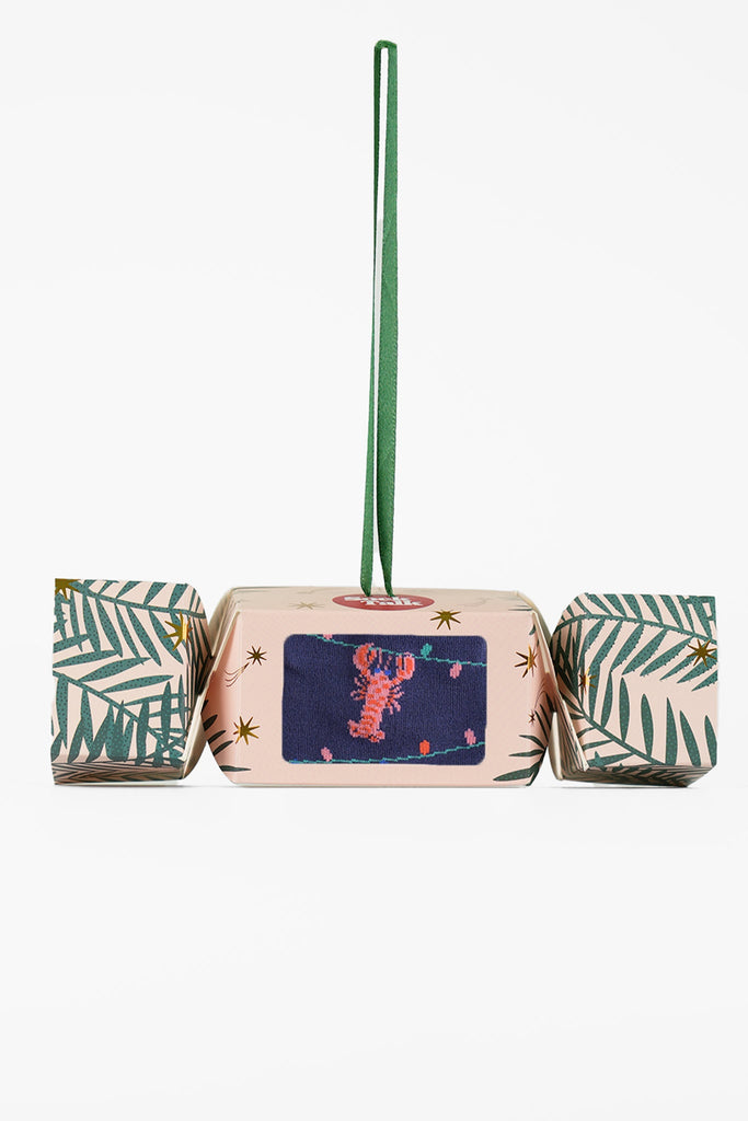 Women's Bamboo Ankle Socks Christmas Cracker Gift Box - Navy Blue/Orange, Lobster Party Lights