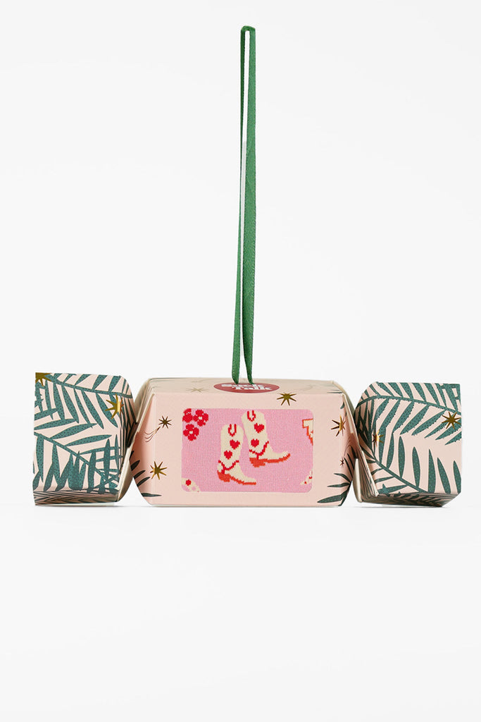 Women's Bamboo Ankle Socks Christmas Cracker Gift Box - Pink/Red, Western Cowgirl Snakes