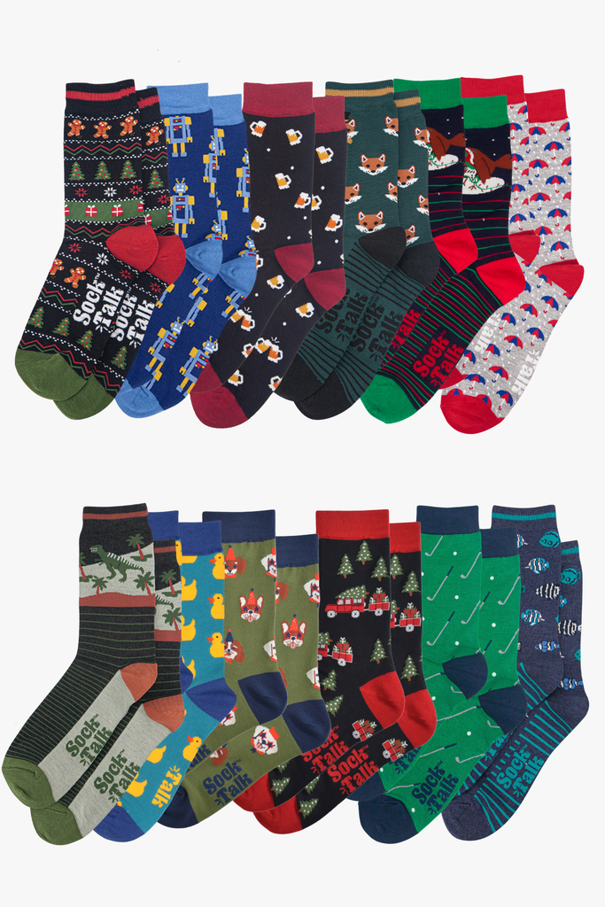 Men's Bamboo Crew Socks Advent Calendar - Navy Blue, Mixed