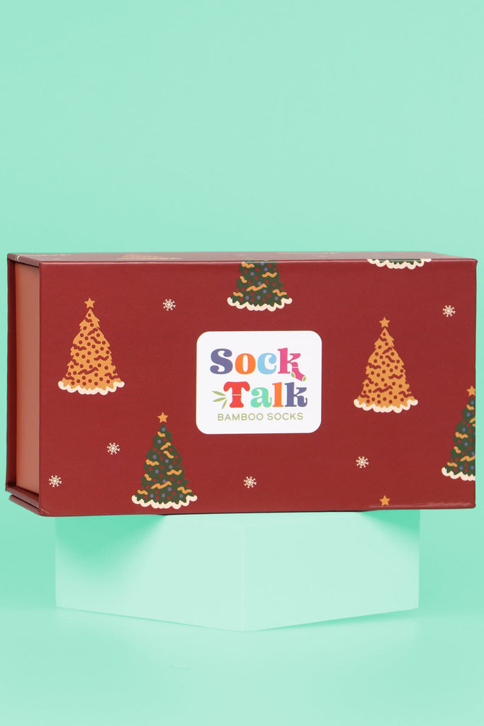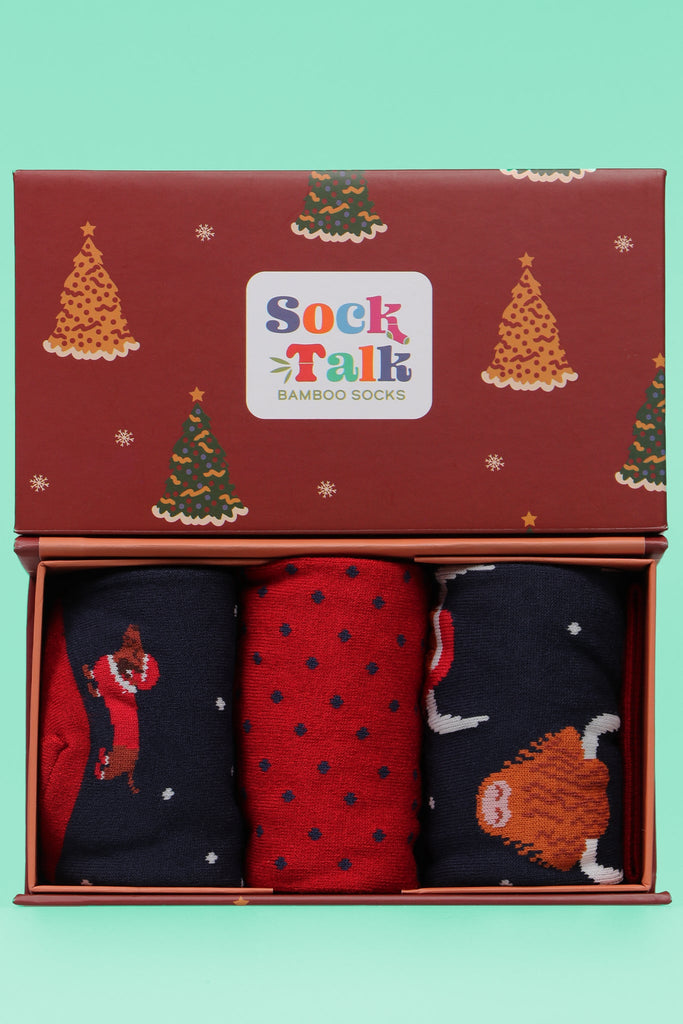Women's Bamboo Sock Gift Box - Navy Blue/Pink, Winter Dogs