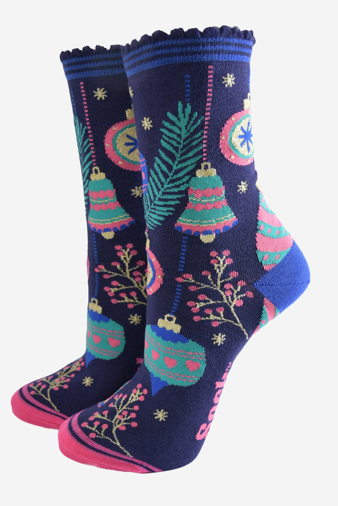 Womens Bamboo Sock Giftset - Navy Blue/Teal, Playful Peacocks
