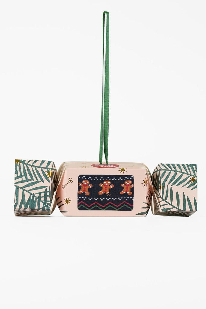 Men's Bamboo Crew Socks Christmas Cracker Gift Box - Black/Khaki, Gingerbread Fair Isle
