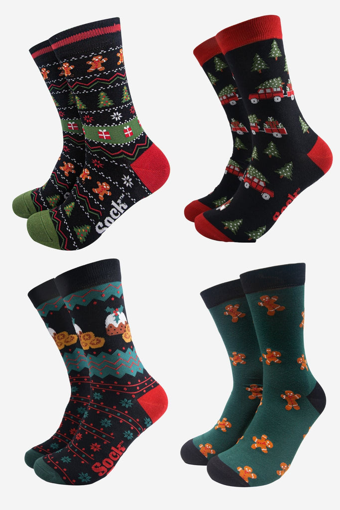 Men's Bamboo Crew Socks Festive Gift Set - Black/Red, Classic Christmas