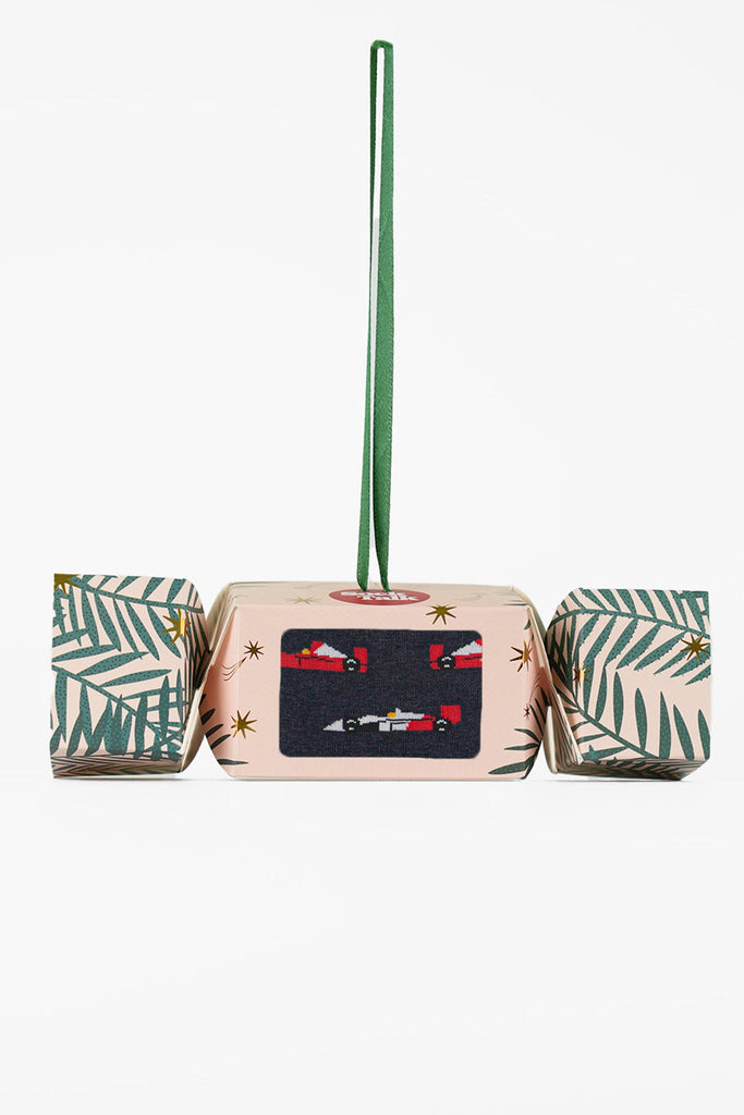 Men's Bamboo Crew Socks Christmas Cracker Gift Box - Navy/Red, Race Cars