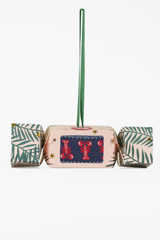 Men's Bamboo Crew Socks Christmas Cracker Gift Box - Navy Blue/Red, Christmas Lobster