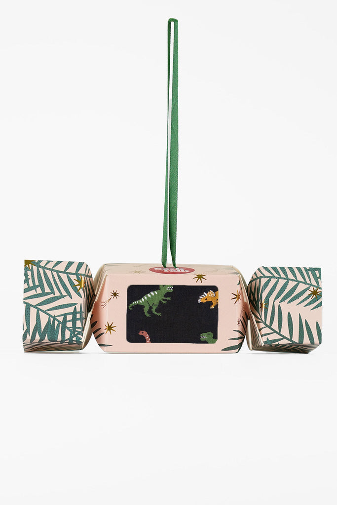 Men's Bamboo Crew Socks Christmas Cracker Gift Box - Black/Multi, Dinosaurs