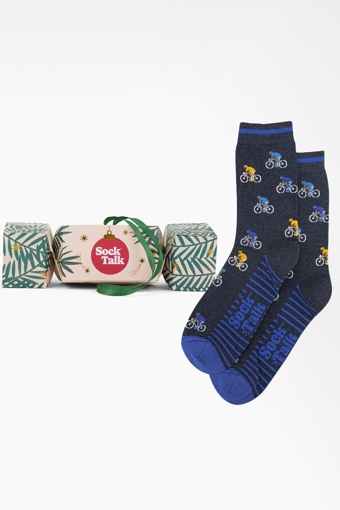 Men's Bamboo Crew Socks Christmas Cracker Gift Box - Navy, Cyclists