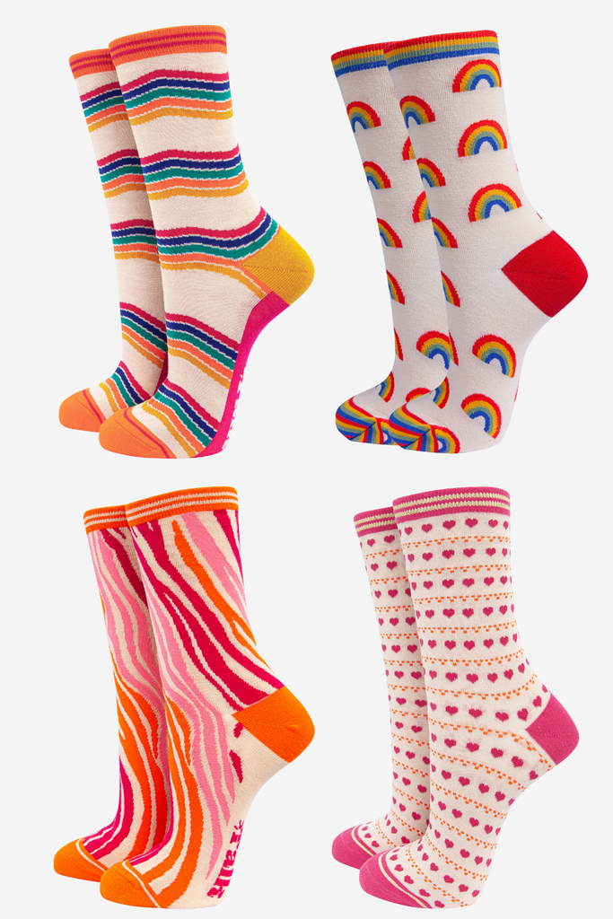 Women's Bamboo Ankle Socks Festive Gift Set - Cream/Multi, Mixed Graphic