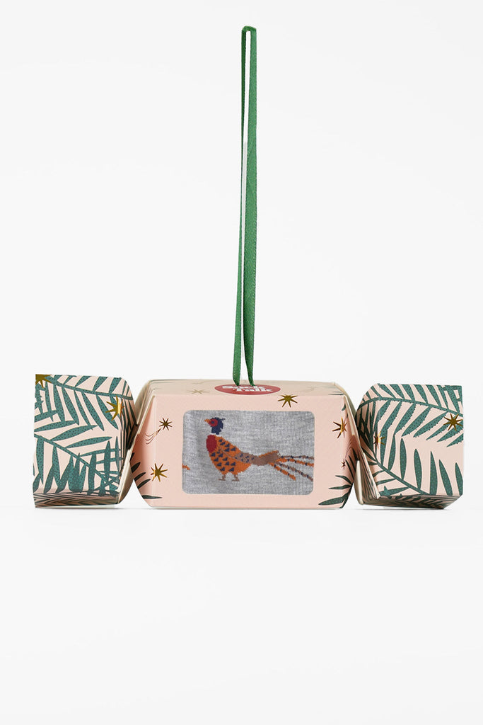 Men's Bamboo Crew Socks Christmas Cracker Gift Box - Grey/Navy Blue, Pheasant
