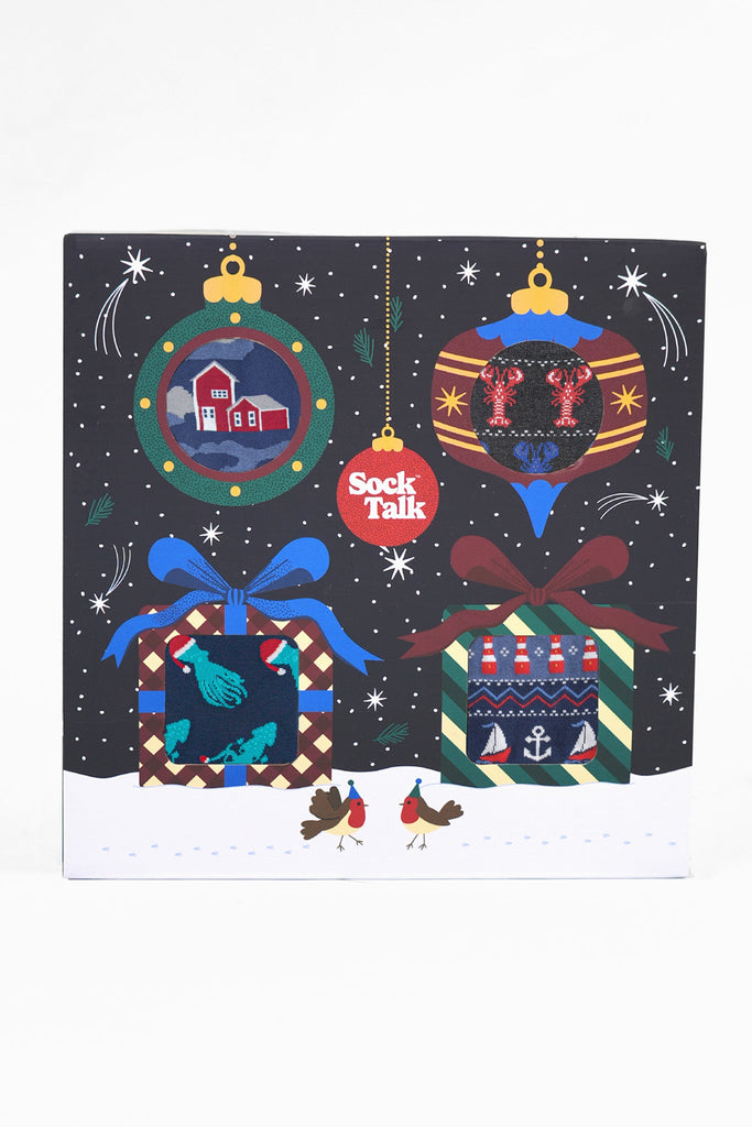 Men's Bamboo Crew Socks Christmas Cracker Gift Box - Denim Blue/Red, Lobster Fair Isle