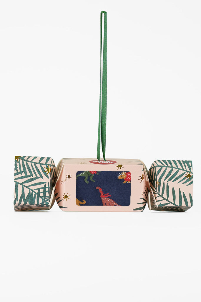 Men's Bamboo Crew Socks Christmas Cracker Gift Box - Navy Blue/Red, Christmas Dinosaurs
