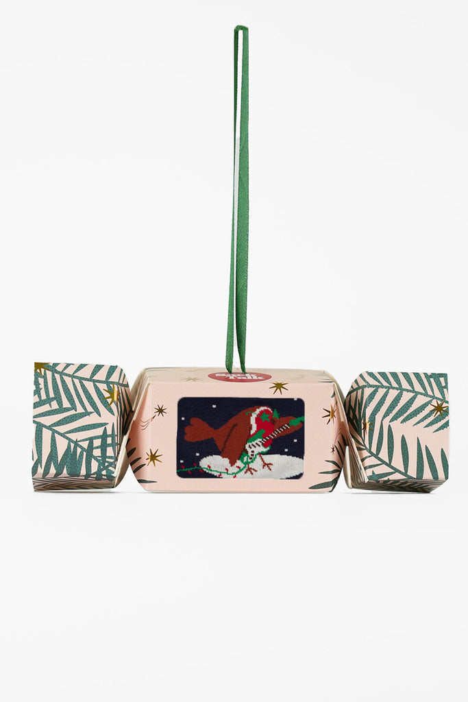 Men's Bamboo Crew Socks Christmas Cracker Gift Box - Navy Blue/Red, Rockin' Robin
