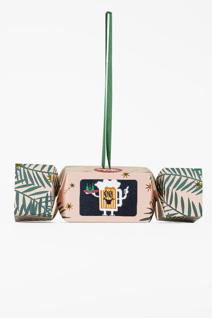 Men's Combed Cotton Crew Socks Christmas Cracker Gift Box - Black/Grey, Here For The Beer