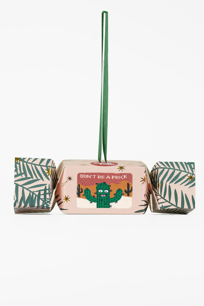 Men's Combed Cotton Crew Socks Christmas Cracker Gift Box - Cream/Brown, Prickly Cactus