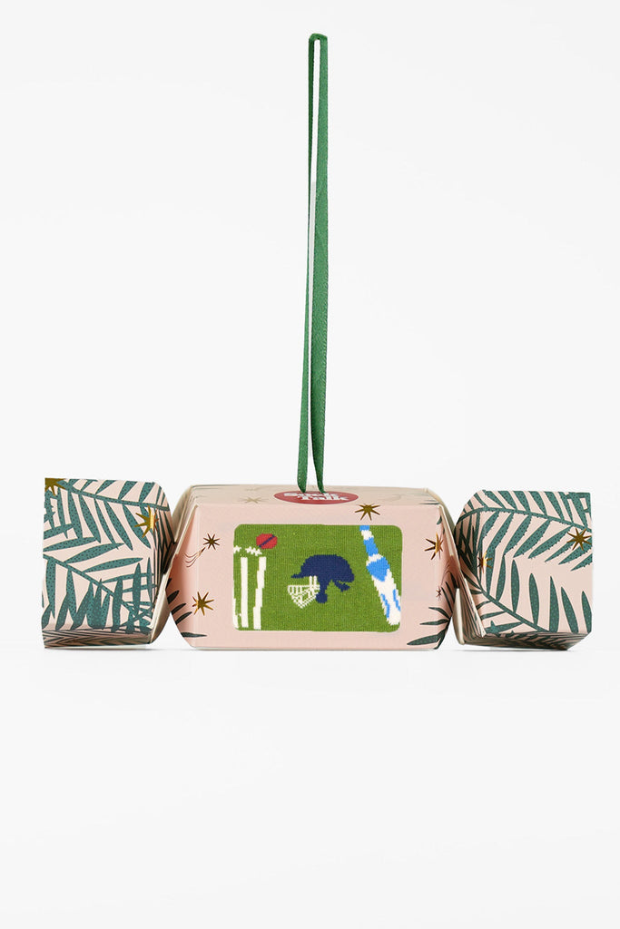 Men's Bamboo Crew Socks Christmas Cracker Gift Box - Green/Navy Blue, Cricket