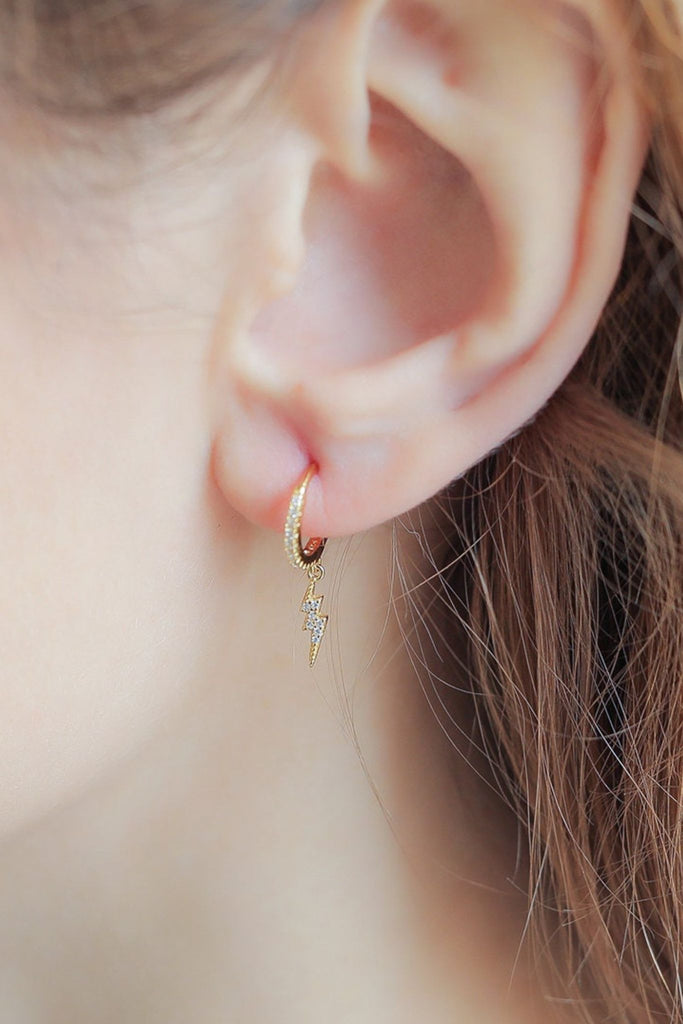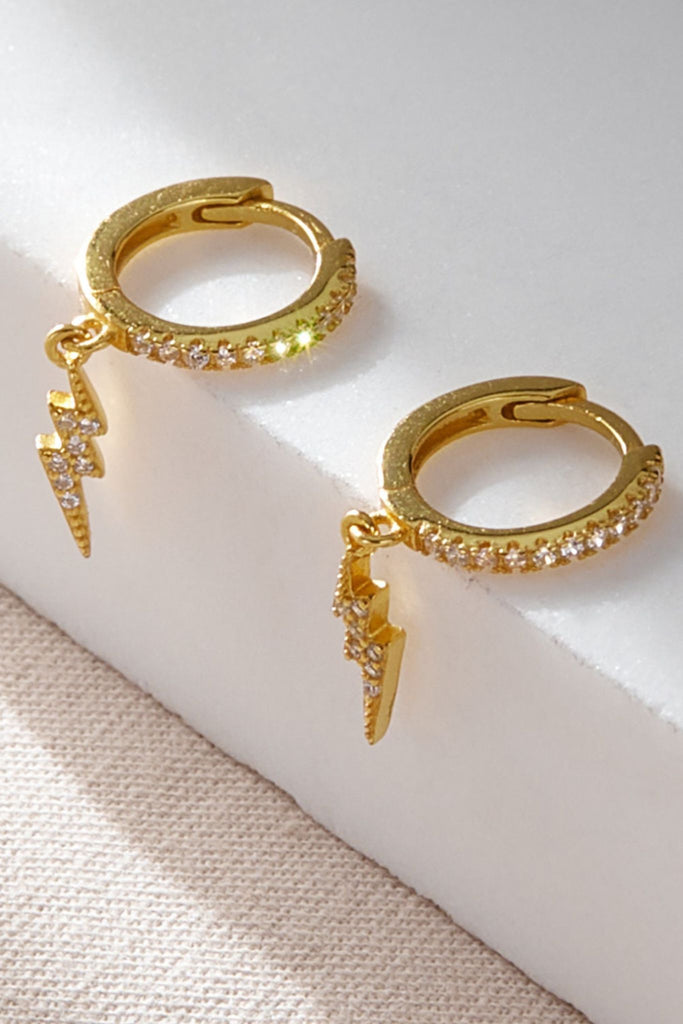 Give your outfit an electric touch with these Sterling Silver & CZ Lightning Bolt Hoop Earrings. Made from durable sterling silver and Cubic Zirconia for a sparkly finish, these earrings can be worn for any occasion. Available in silver or gold.