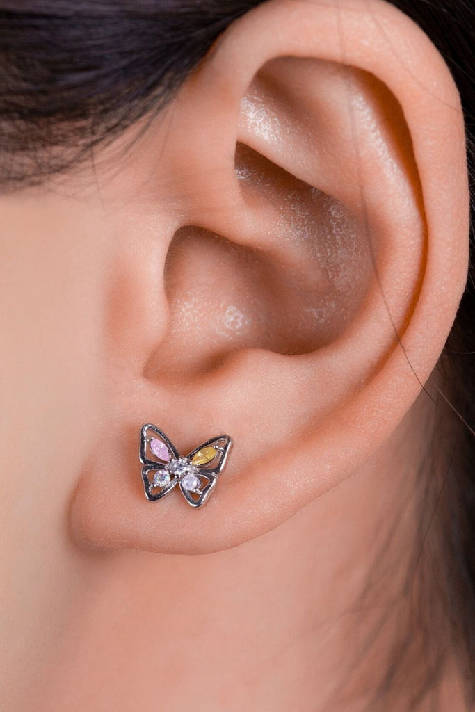 Sterling Silver Sparkly Butterfly Stud Earrings