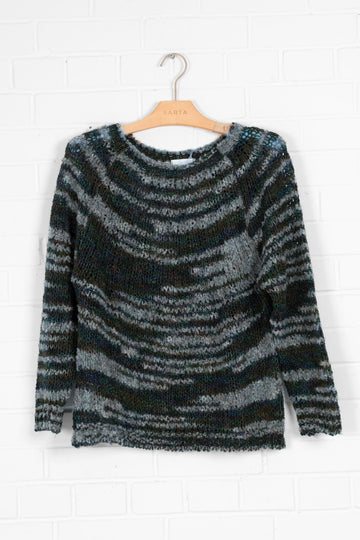 Sage Wool Blend Jumper - Navy Blue, Textured Stripe