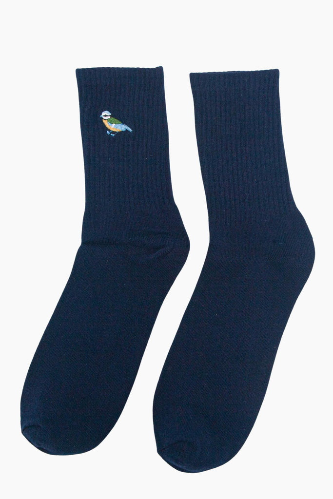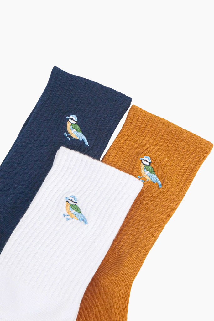 Men's Blue Tit Embroidered Cotton Socks - 3 Pack