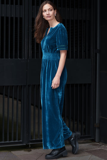 Lydia V-neck Jumpsuit- Teal, Velvet