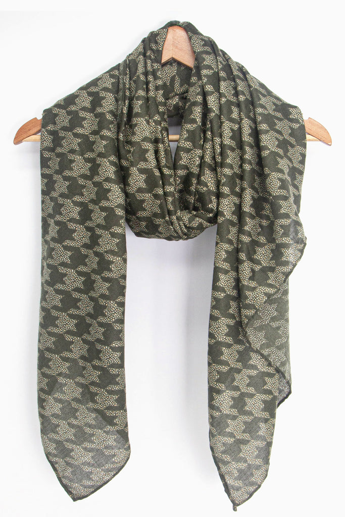 Melody Lightweight Scarf - Khaki, Houndstooth Foil