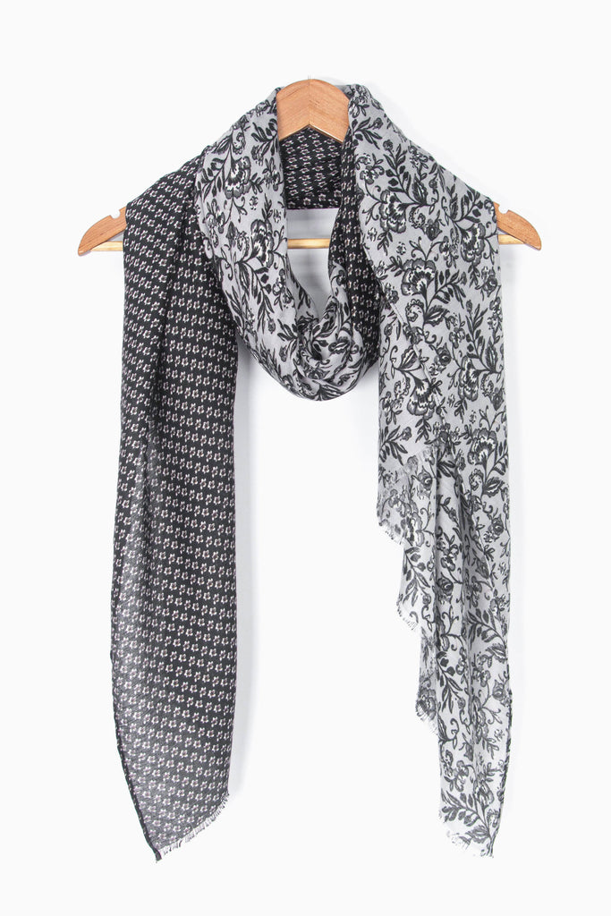 Flora Lightweight Scarf - Black, Indian Floral