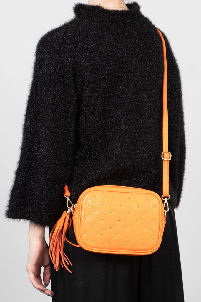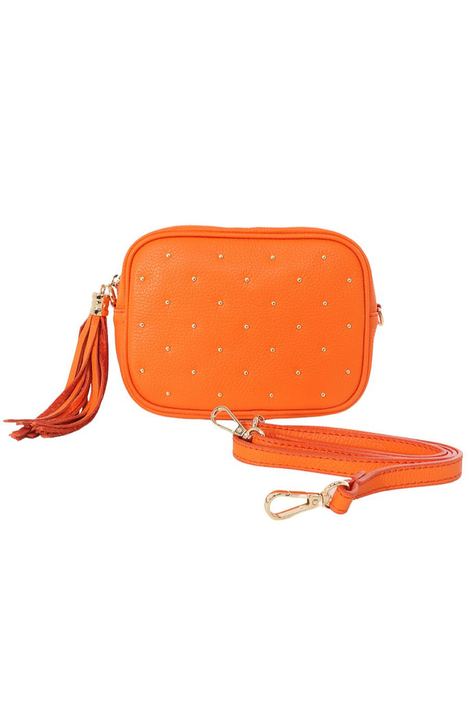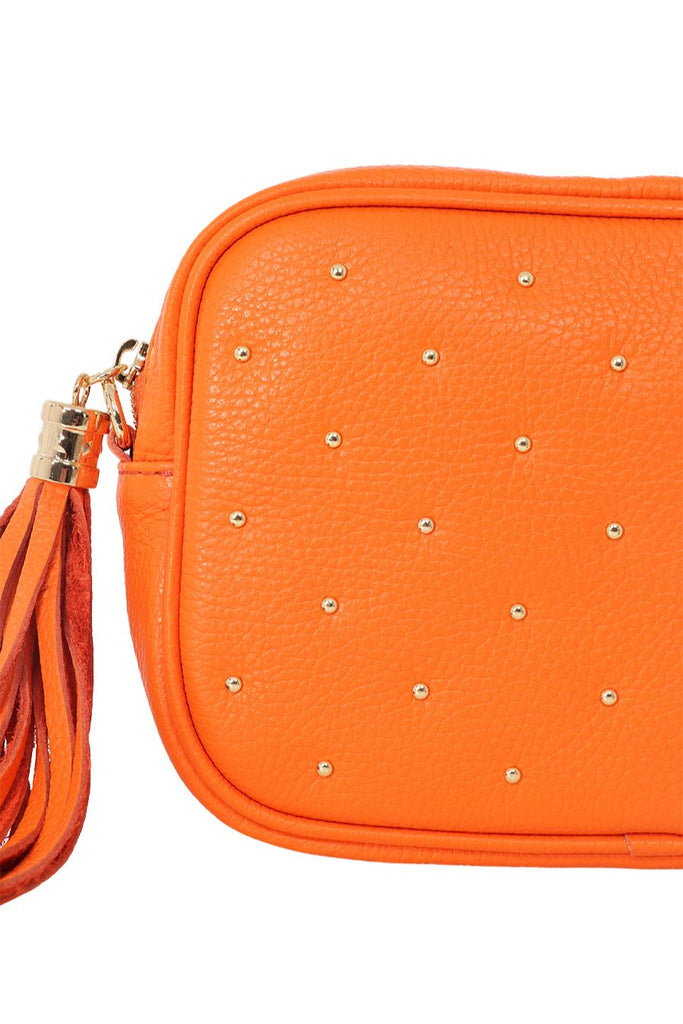 Giulia - Italian Leather Studded Camera Bag - Orange, Pebbled