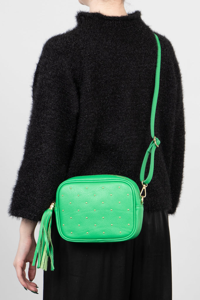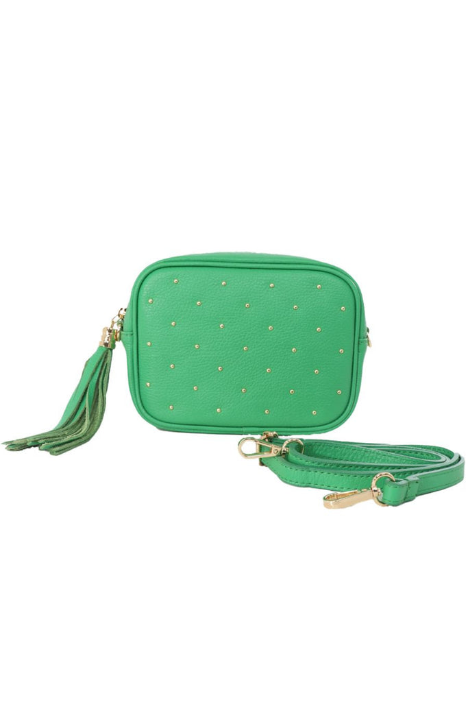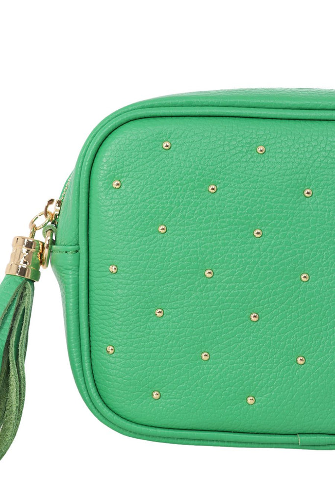 Giulia - Italian Leather Studded Camera Bag - Green, Pebbled