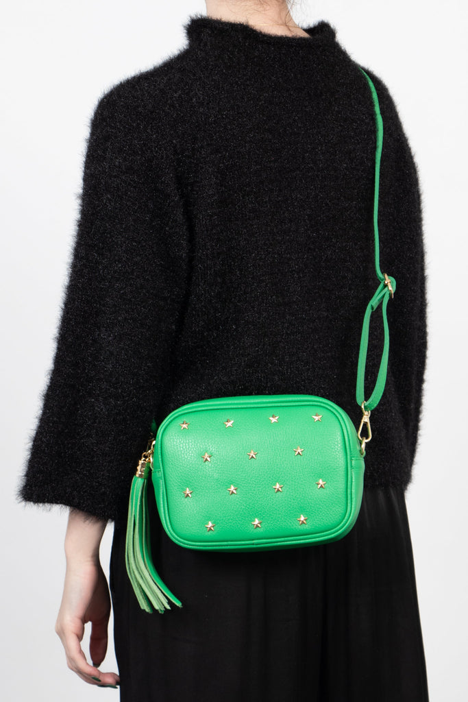 Eloise Star Studded Crossbody Bag - Green, Pebbled